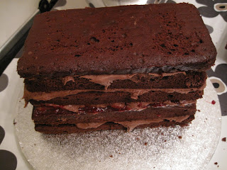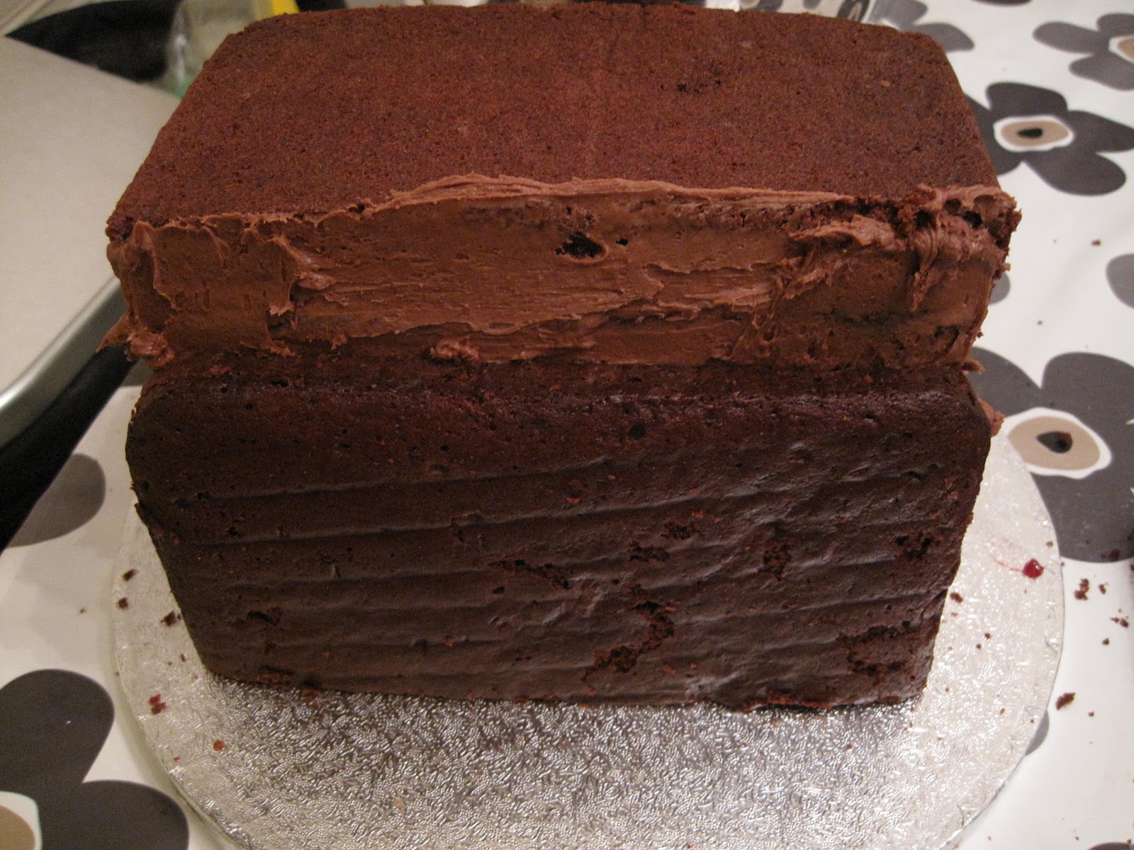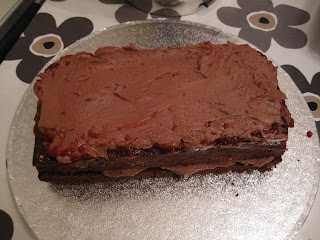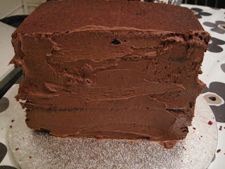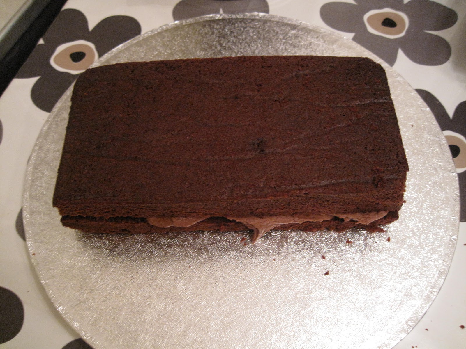 Smør et lag med sjokolade smørkremen på langsiden