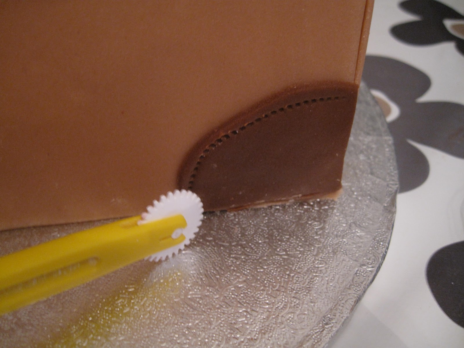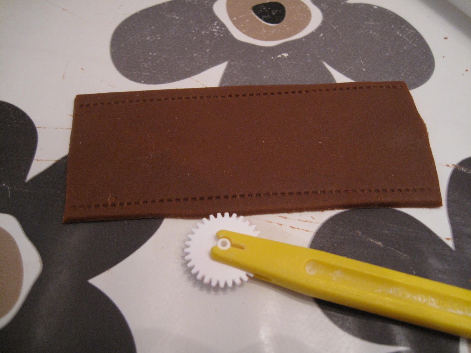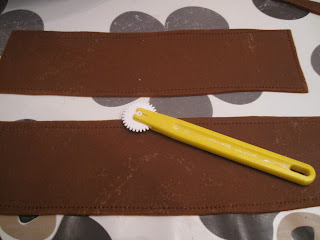 Bruk malen fra langsiden for å lage en like bred bit marsipan, bruk rissehjul her også på 2 sider