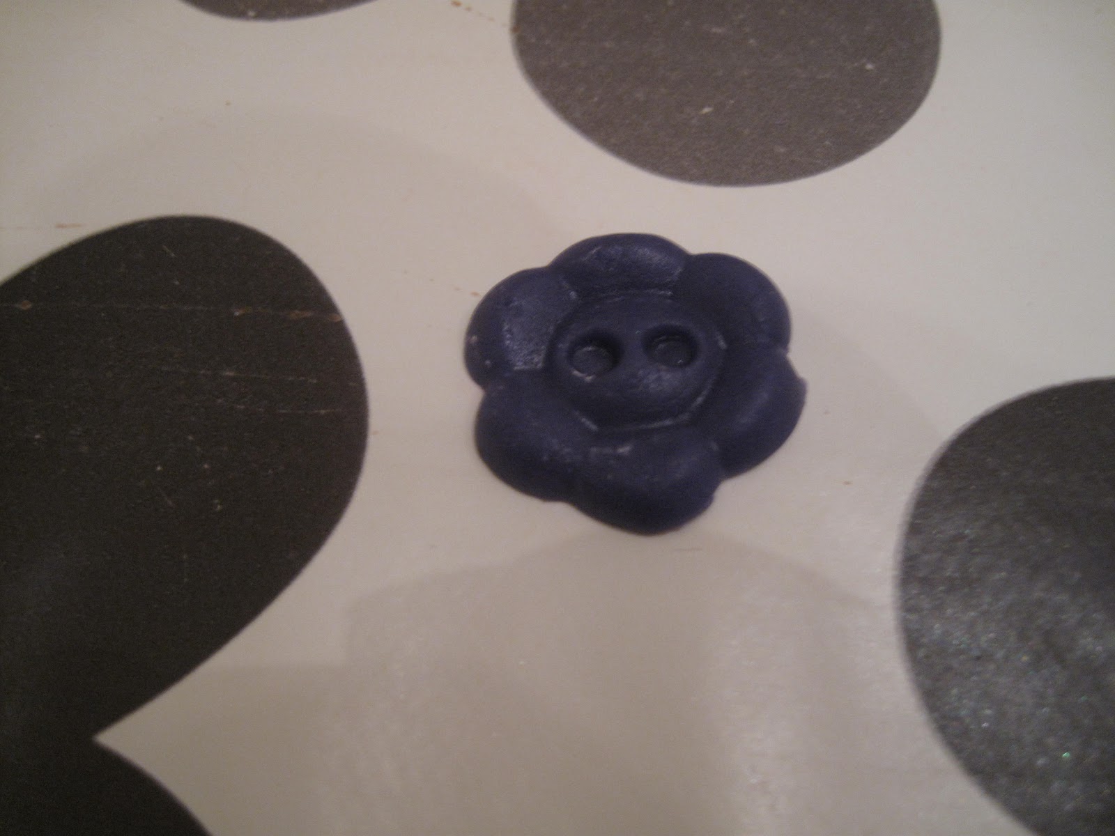 Så pyntet jeg med knapper rundt omkring. Veldig enkelt med denne silikonformen. Bare legg marsipan oppi og vreng den ut