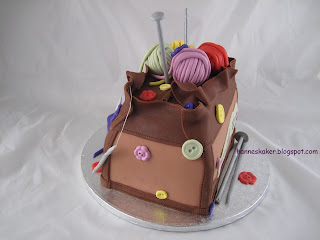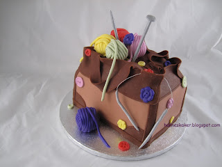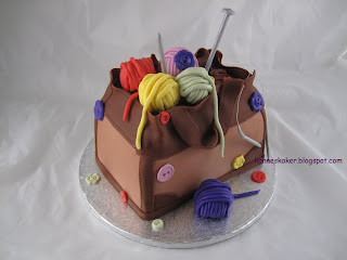 La noen av garn endene på nøstene henge litt nedover kaken