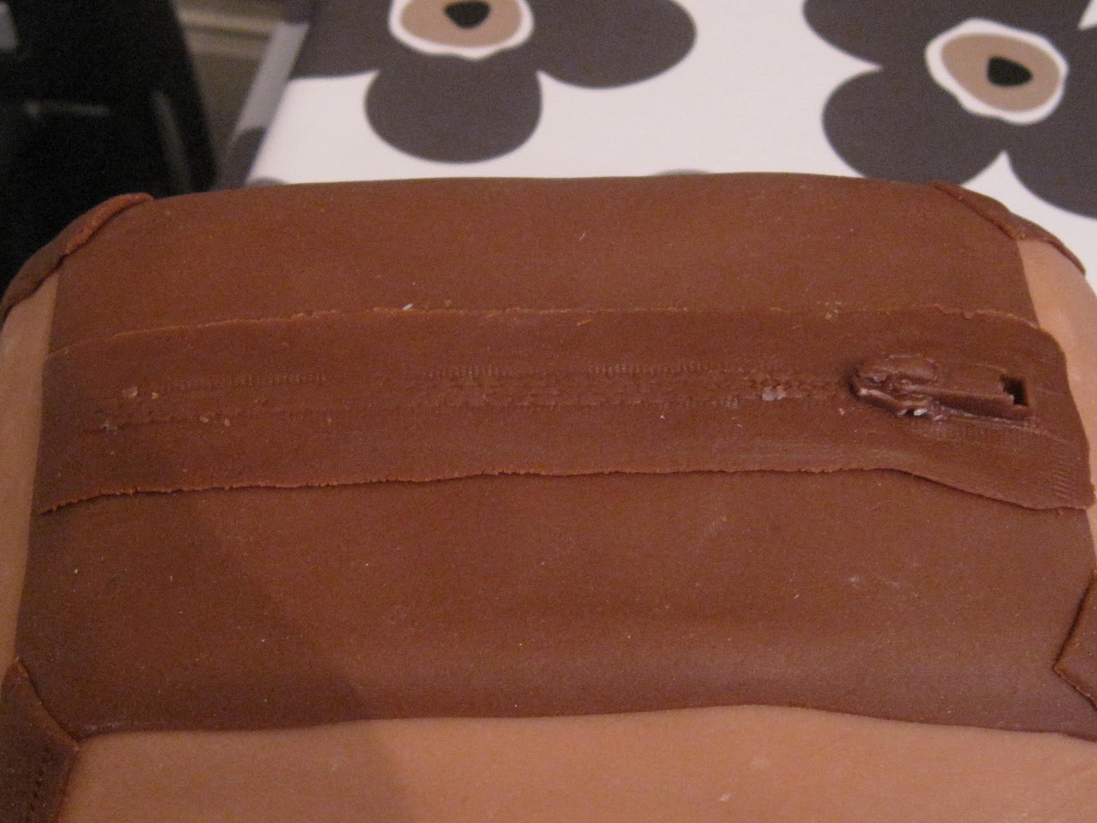 Så trenger vi en glidelås 😉 Denne er laget i en silikonform. Den får du kjøpt på www.kakeboksen.no