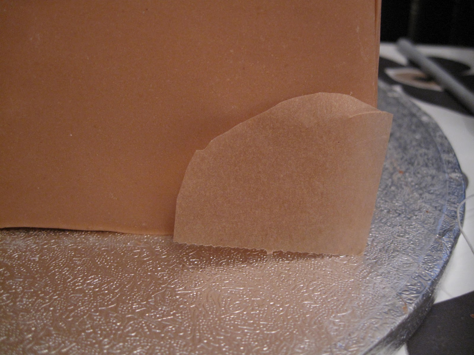 Lim den på på siden, den skal være litt høyere enn selve kaken for den skal stikke opp litt…