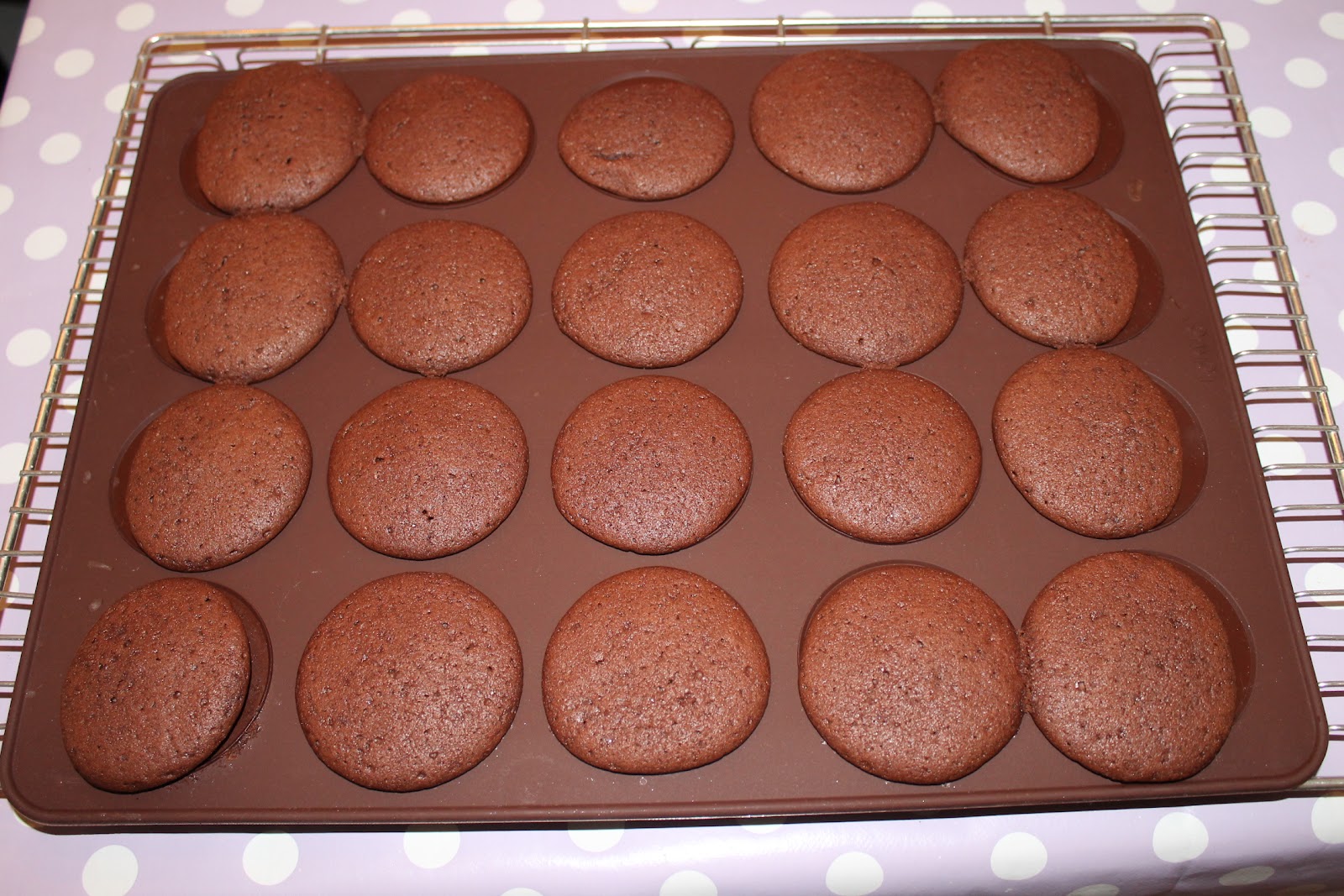 La de stå et lite 5 min før de løftes forsiktig av og legges på rist til avkjøling. De løsnet kjempe lett fra silikon matten, me like <3