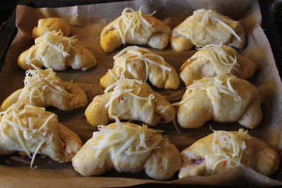 Etter heving penslet jeg med egg og hadde ost oppå noen av de. Stekes midt i ovnen i forvarmet ovn 225 grader i 8-12 min. Når de er brune under og har fått en fin gylden farge er de ferdig stekt