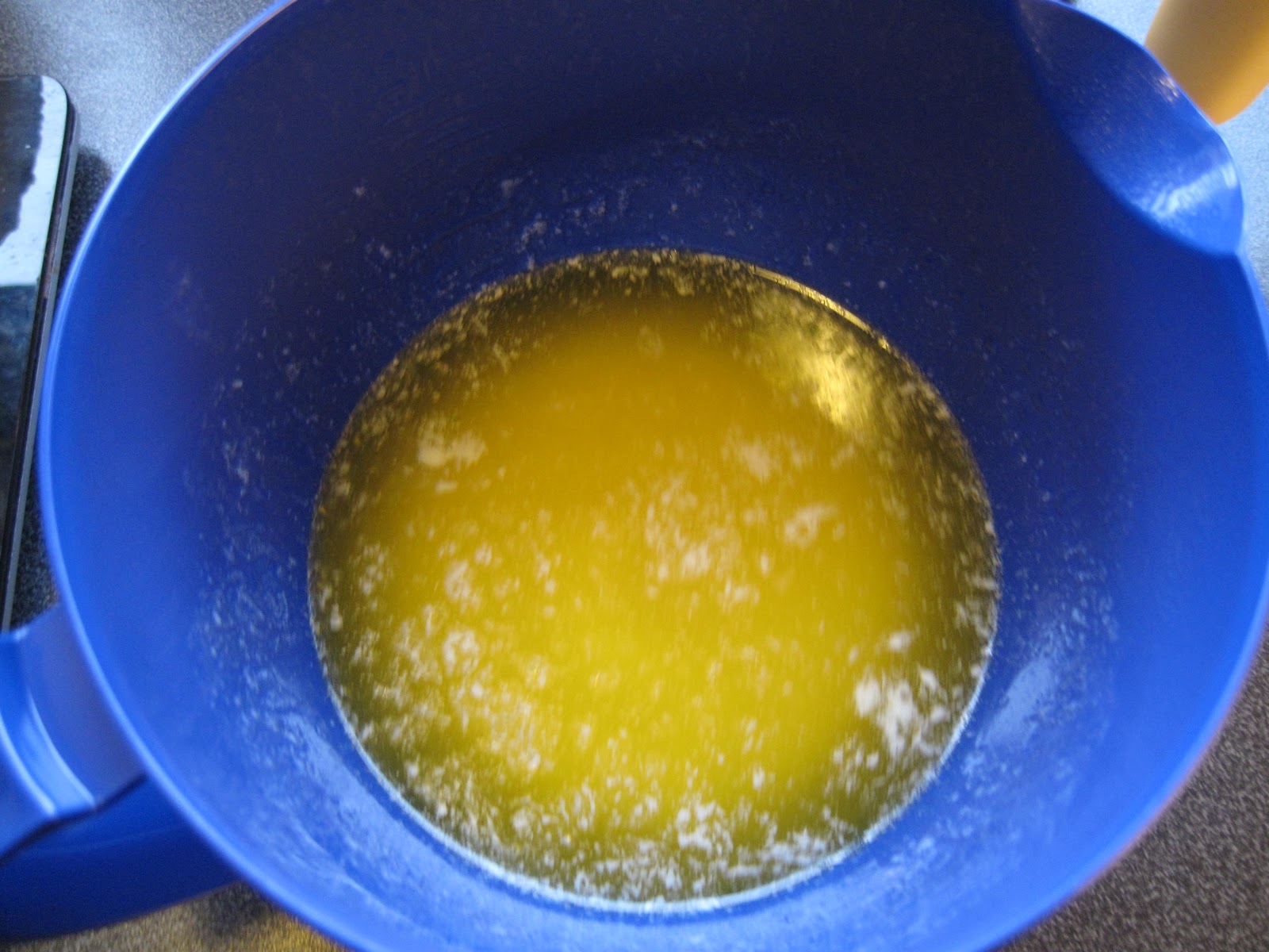 Bland sammen smeltet smør og melk og varm det til fingervarmt, jeg bruker micro til dette