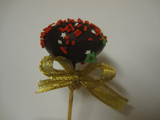 Her er cake popsen, knyt en sløyfe rundt til dekorasjon. Kan også sette den på hodet i en liten muffinsform