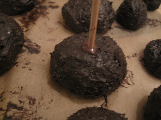 Dypp cake popsen oppi sjokoladen og la det renne av, hvis ikke ett lag dekker dypper du en gang til