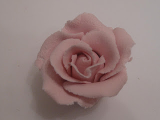 Her er begge rosene jeg laget ferdige:-) Når jeg setter de på en kake så kan det være at man må skjære av de litt. For det er ikke så pent med høye roser, finere når de ligger litt ned mot kaken